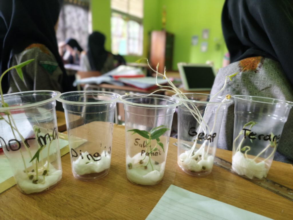 Dalam praktik tersebut, siswa melakukan pengamatan terhadap kecambah dengan perlakuan suhu yang berbeda, yaitu suhu udara normal di dalam kamar, suhu panas di bagian belakang kulkas, serta suhu dingin di dalam lemari es. Setiap perlakuan bertujuan untuk mengetahui pengaruh suhu terhadap kecepatan dan kualitas pertumbuhan kecambah.